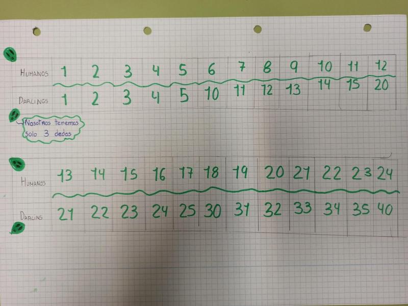 Marian ha hecho la siguiente comparación para ilustrar cómo contamos los humanos y cómo cuentan los derlins.