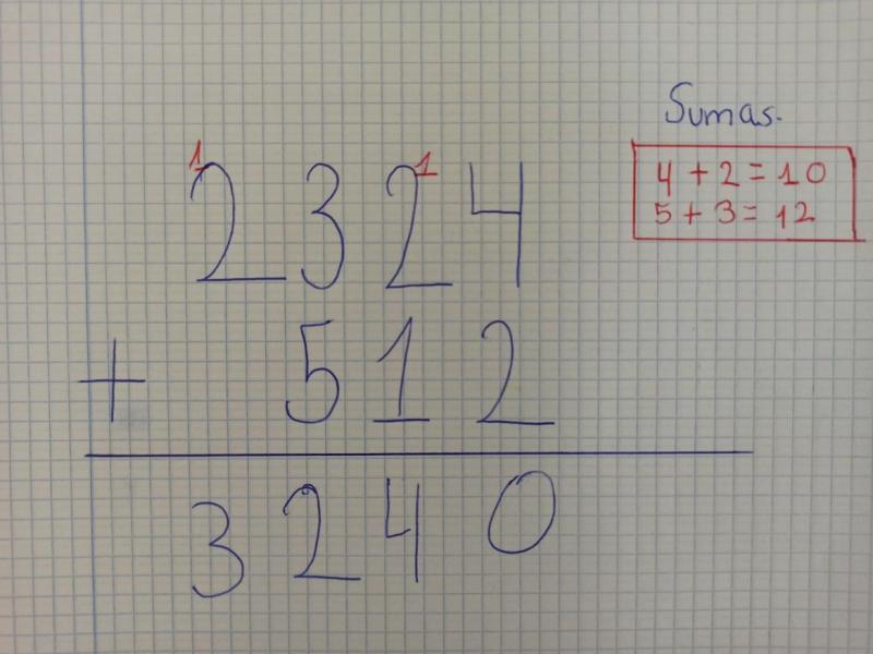 De todas formas esta suma tiene truco porque no tiene “llevadas”. Es decir, ninguna suma de cifras es más grande que 5 (o de 9 en el caso de los humanos).