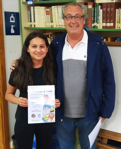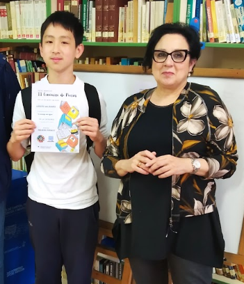 Lingyu Lai, alumno de 1º ESO B, con la Jefa del Dpto. de Lengua Castellana y Literatura, Mª José Forcén.